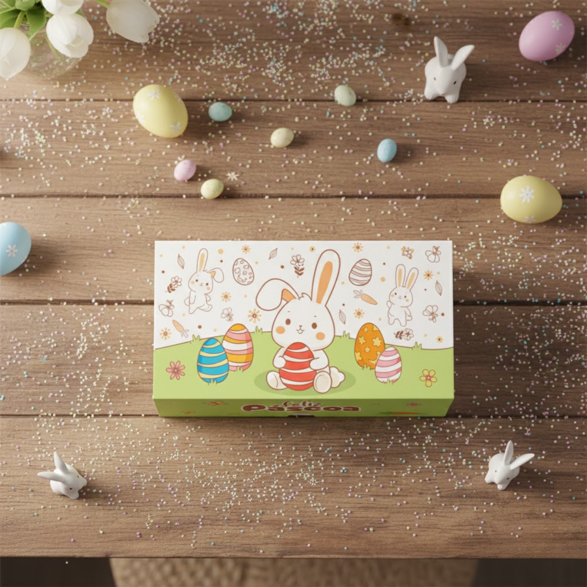 A Caixa 8 Doces Practice Páscoa Colorir é ampla, divertida e ideal para transformar o presente de Páscoa em uma experiência criativa e personalizada. Com ilustrações exclusivas para colorir, ela incentiva a imaginação e permite que cada embalagem se torne única, trazendo ainda mais encanto para a data. Seu espaço interno generoso acomoda oito doces com segurança e excelente apresentação, tornando-a perfeita para trufas, brownies, doces variados e lembranças especiais. Além disso, é uma ótima opção para montar kits infantis com confeitos, lápis de cor, mini brinquedos e outras surpresas que tornam o momento ainda mais lúdico. Entre seus diferenciais estão a impressão própria para pintar, a estrutura firme e durável e o formato prático que valoriza e protege cada criação. Uma embalagem versátil que une funcionalidade, diversão e charme em cada detalhe.