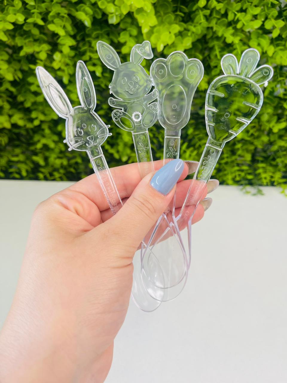 Celebre a Páscoa com detalhes que encantam! Nossa colher decorativa em cristal traz um design exclusivo com delicados apliques em formato de coelhinho, cenoura e pé de coelho. Ideal para servir doces, mousses, brigadeiros de colher ou até mesmo como um mimo no café da manhã especial.