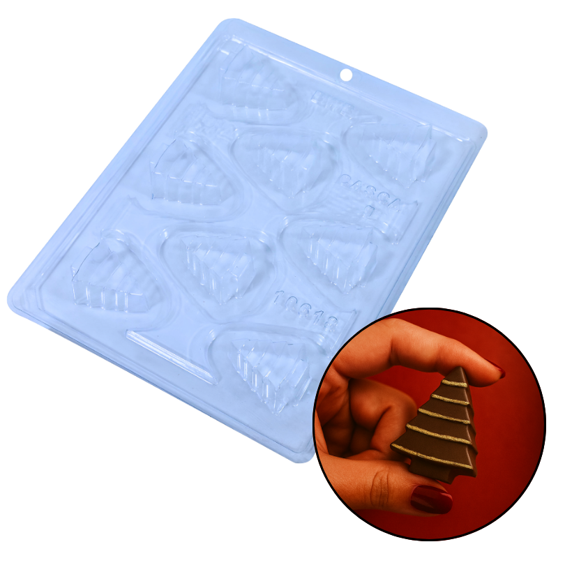 Forma especial com silicone (3 partes), ideal para produção de chocolates com muito mais praticidade e precisão. Possui uma “marquinha” indicando a quantidade necessária de chocolate, levando para geladeira uma única vez. Ela proporciona uma casca uniforme e um acabamento perfeito sempre com o mesmo peso.