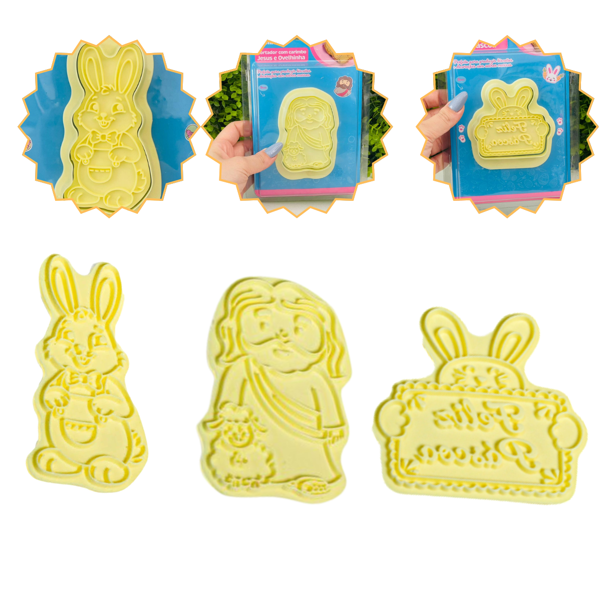 KIT COM 3 MODELOS - Feliz Páscoa, Coelho, Jesus e Ovelhinha.