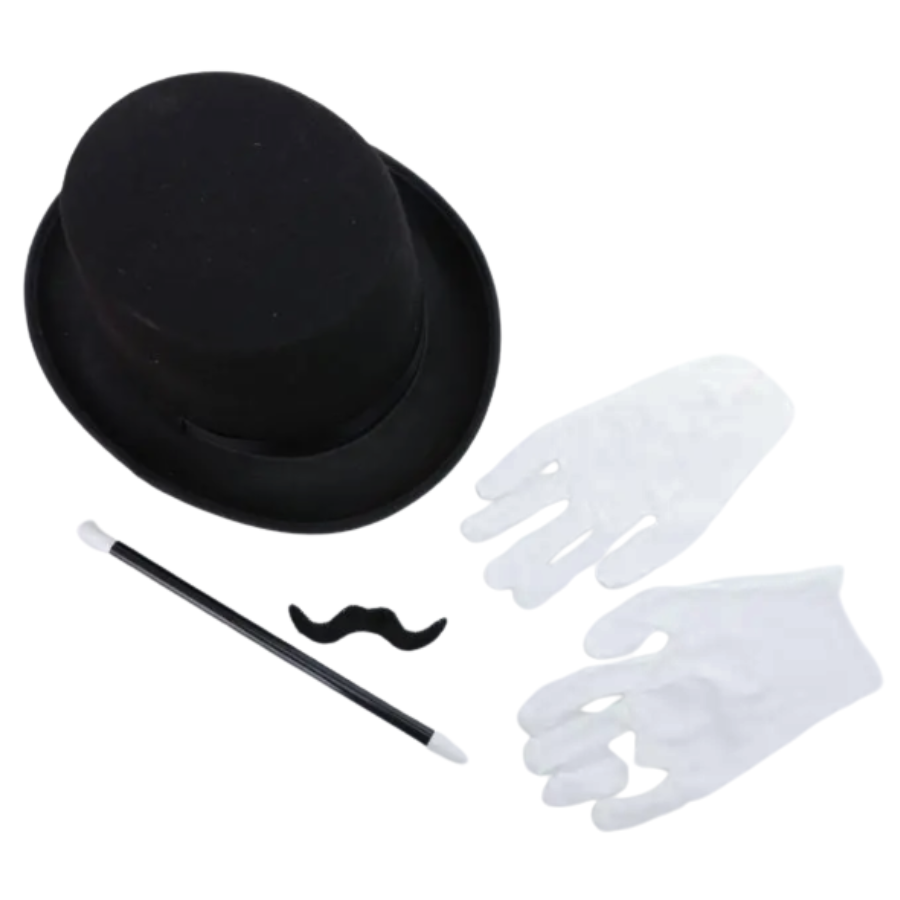 O Kit Mágico Adulto da Cromus é perfeito para transformar qualquer momento em um verdadeiro espetáculo! Composto por 4 peças essenciais — 1 cartola, 1 par de luvas, 1 bigode e 1 varinha — o kit oferece tudo o que você precisa para criar um visual clássico de mágico.
