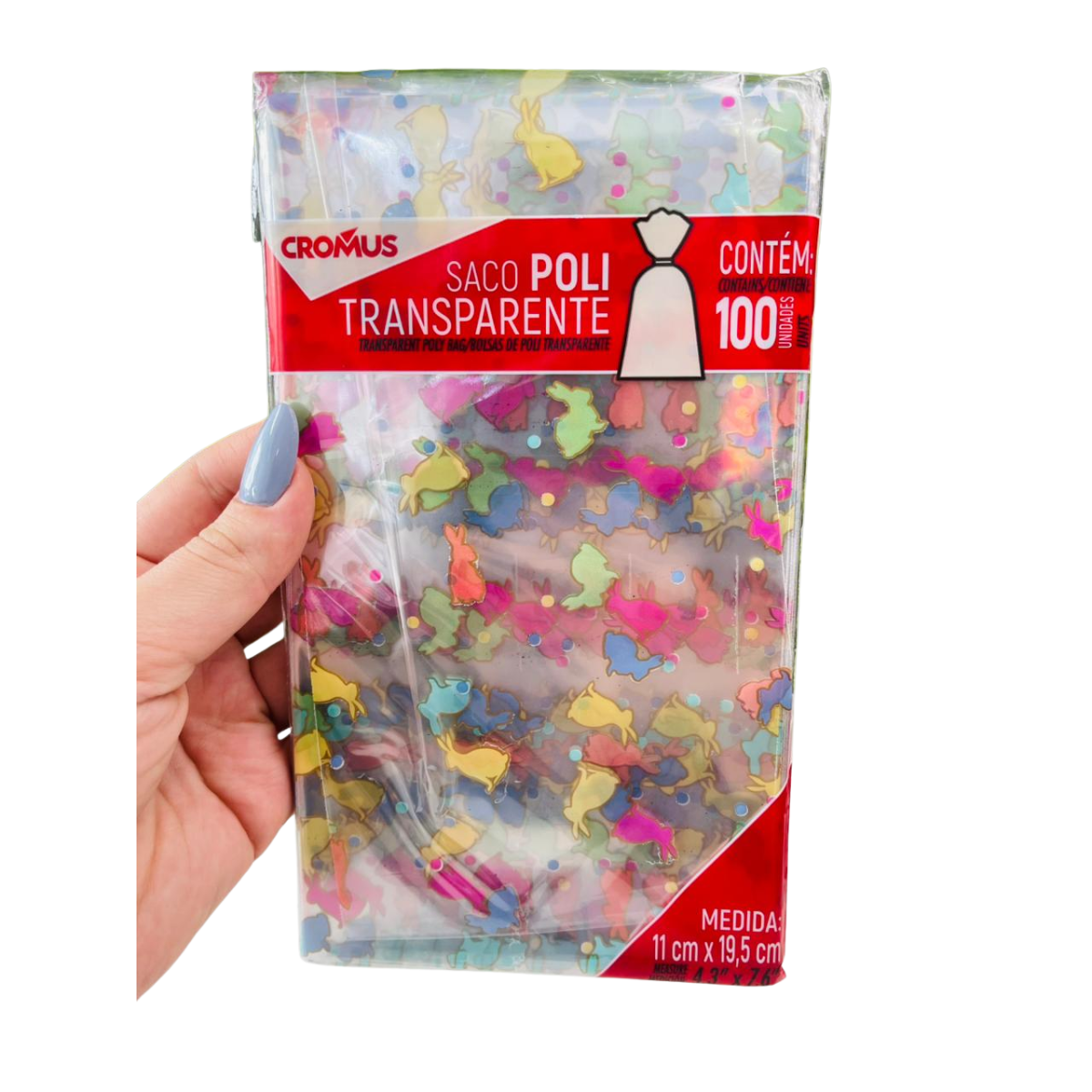 Deixe suas encomendas de Páscoa ainda mais encantadoras com a embalagem perfeita! Este saquinho da Cromus combina a transparência ideal para valorizar o seu doce com uma estampa divertida de coelhinhos coloridos, garantindo uma apresentação profissional e apaixonante.