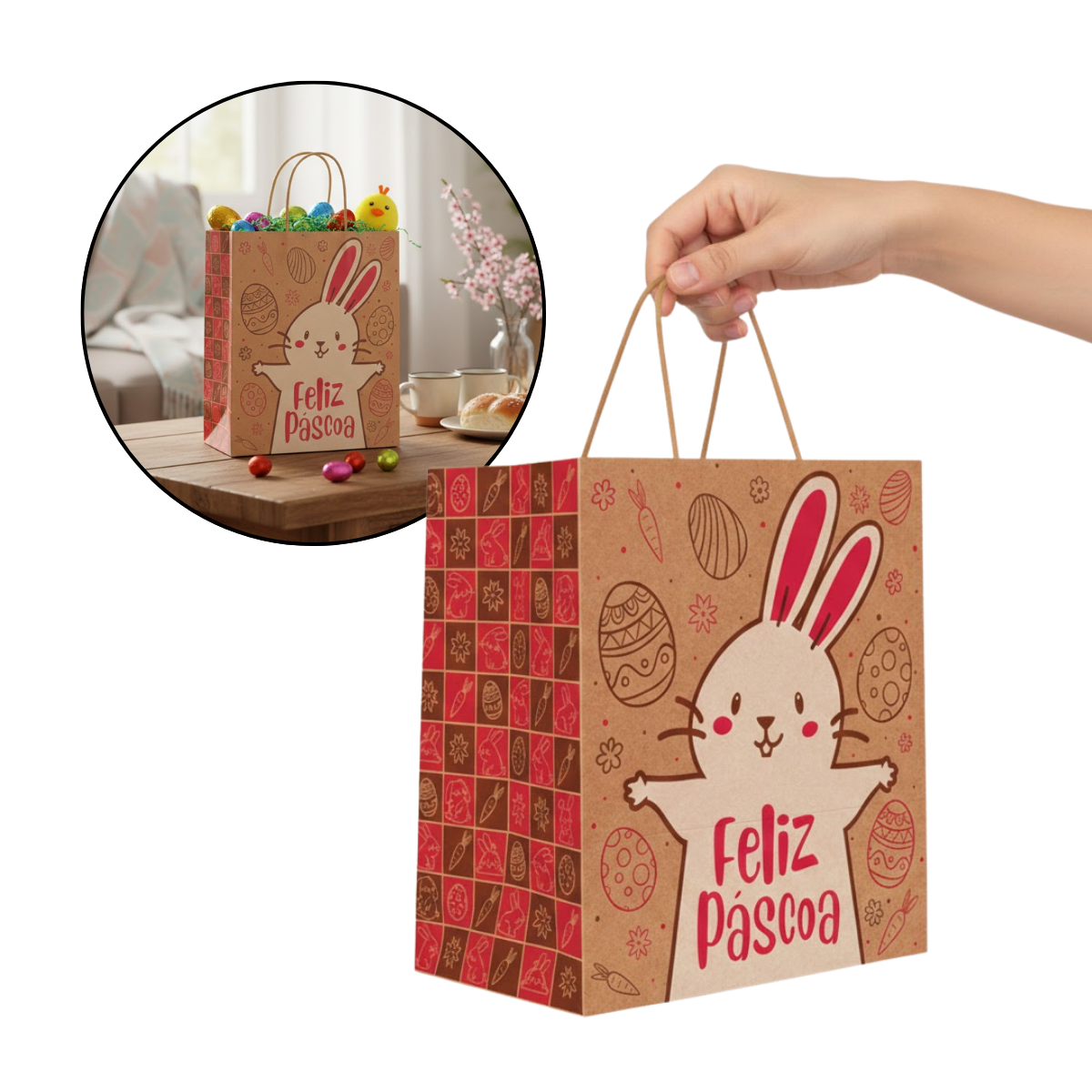 Além das funções básicas, como boa conservação e facilidade no transporte, a embalagem de Páscoa também deve ser bonita a ponto de se tornar um presente, afinal, nessa época do ano é muito comum a troca de lembrancinhas e presentes.
