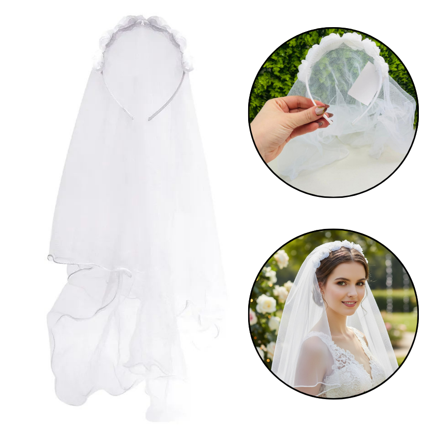 A Tiara Véu de Noiva Branco da Cromus é um acessório delicado e encantador, ideal para completar fantasias, ensaios fotográficos, despedidas de solteira, festas temáticas ou brincadeiras infantis. Confeccionada com uma tiara leve e confortável, ela acompanha um véu branco de tecido suave e fluido, que garante um visual romântico e divertido. Prática e fácil de usar, a peça adiciona um toque especial a qualquer look, trazendo o charme clássico de uma noiva de forma simples e encantadora.